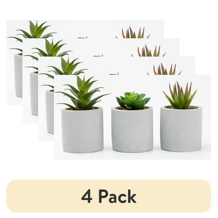 (4 pack) 3-Piece Succulent Set in Gray Cement Planters