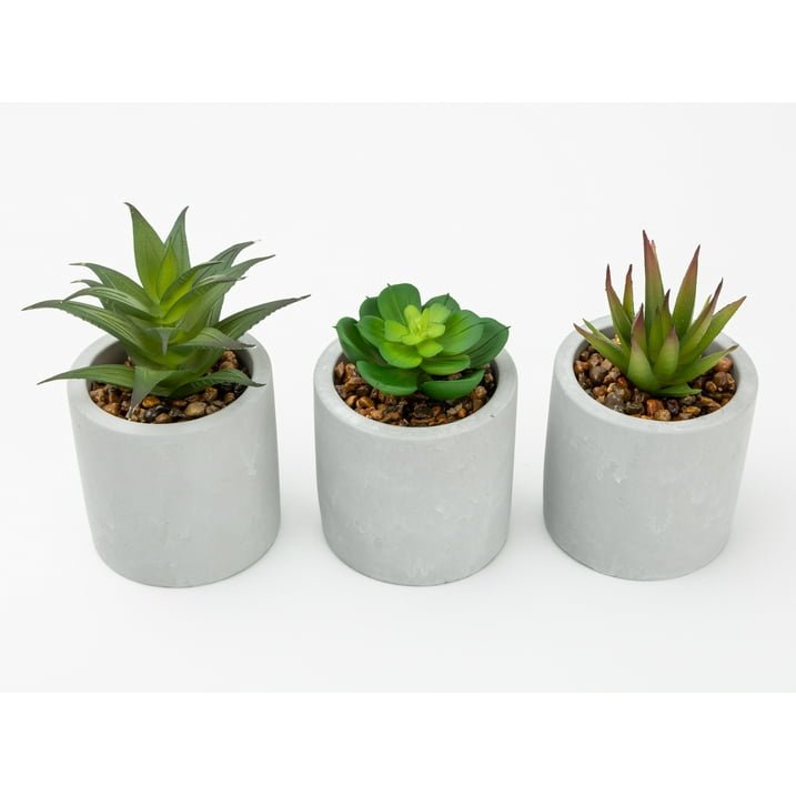 The 3-Piece Faux Succulent Set is a delightful ensemble featuring three intricately crafted artificial plants nestled in charming ceramic pots. These lifelike creations effortlessly introduce a touch of nature to any space. With a diverse selection of styles available, they offer a hassle-free way to enhance the aesthetic appeal of your home or office, requiring no maintenance or sunlight. Replicating the beauty of real plants, each succulent offers lasting enjoyment and adds a serene ambiance to your surroundings.