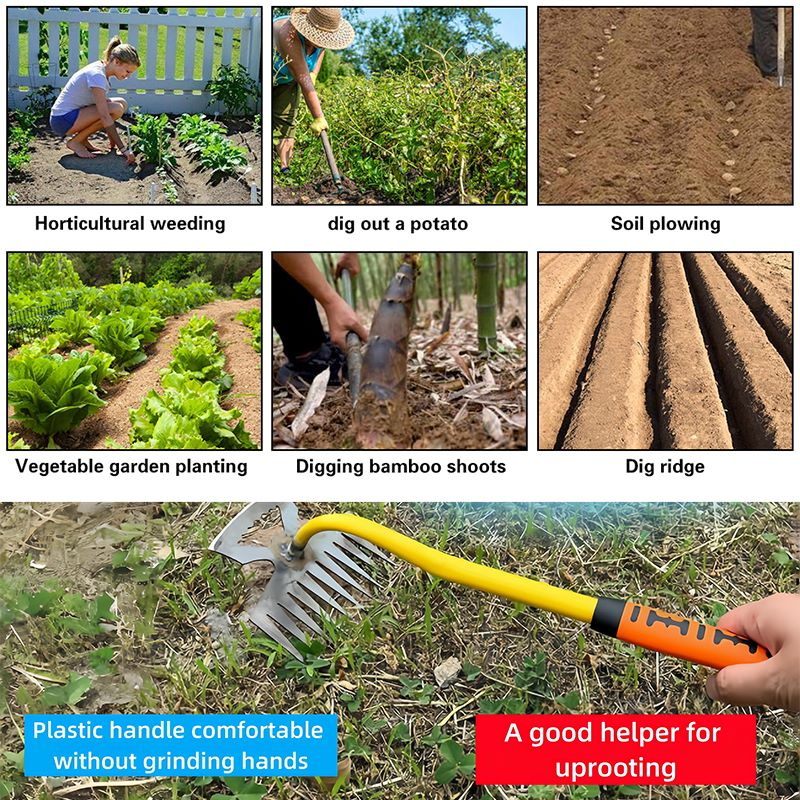 The multi teeth rooting weeder is designed for weeding, digging and shoveling.